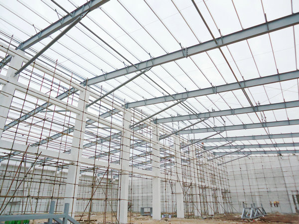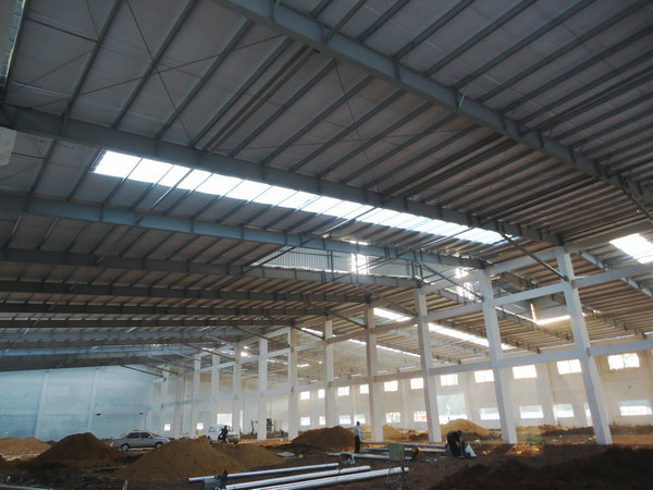 大瀝精工廠房位于佛山市南海區獅山大瀝。占地面積為15200平方米,主鋼架結構采用混凝土柱和H型焊接鋼梁相結合方式。墻體用磚墻,屋面用單彩板。屋面布置通風氣樓以此為空氣循環使用。以下是部分廠房安裝圖片: